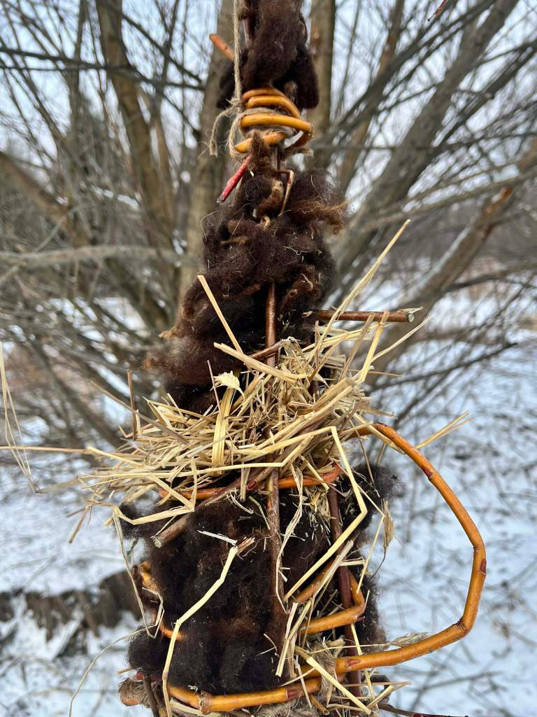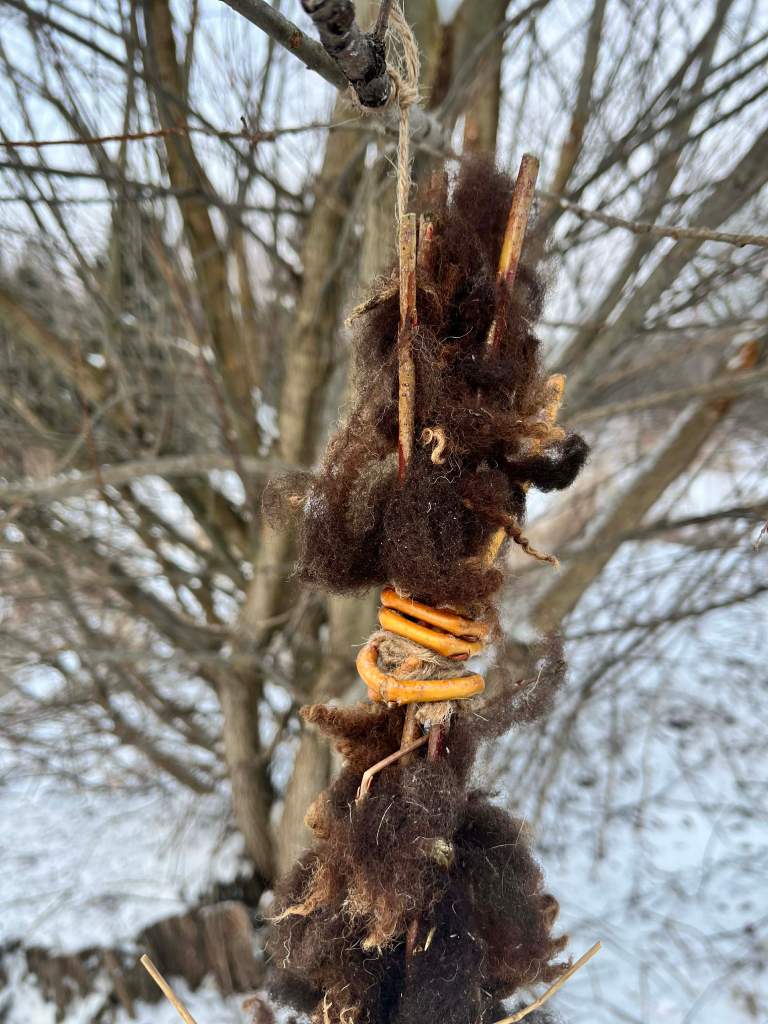 This is one of the few years we will not have hair sheep shedding out on the farm and for the past 20 years i have watched the birds carefully pick and use the bits of wool in their nests. If you check the nests in the trees, you will also see that winter horse hair (Caleb’s the favorite, as its longer) is also a clear winner!