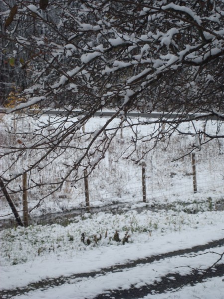 We woke up last week to the world being a christmas scene, As we just fenced in that part of the farm this year, it was a surprise to me at just how pretty the view out my living room window was when I sat down for breakfast at the table..