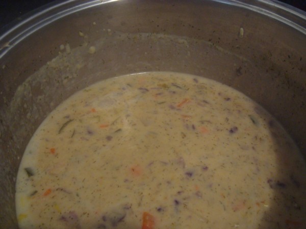 As they say, Eat your colors.. So then simmer on the stove for 40 min to an hour till all cooked and flavors blended, then I will make my rue and thicken it up, and add my whole milk to finish the chowder off, have yet to decide I will make baking powder or dumpings to go with.. we will see..