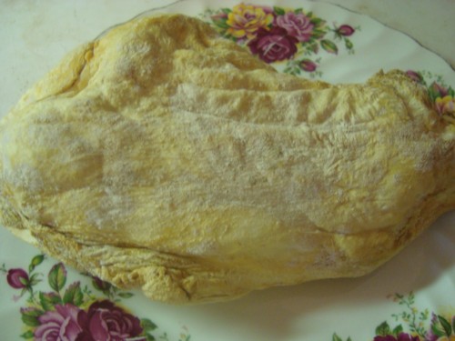 It took three weeks, they said, roughly 2 days per pd of meat per leg but it took alittle long, perhaps because it was bone in? Where they said to debone the lamb leg for ease of cutting afterwards. The longer you leave it in, the larger and stronger your salted rind is likely to be.