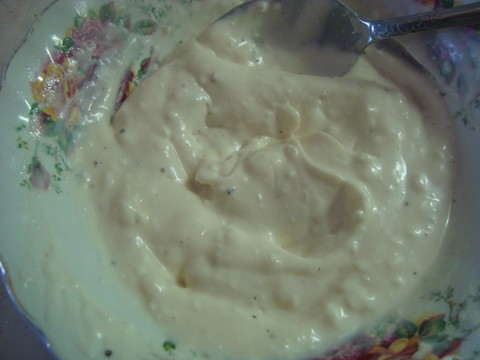 Blend the above till smooth in a food processor or by hand if you don’t mind if its not perfectly smooth, which I don’t.. make half a cup of dressing. This is a tangy dressing with great flavor, can be used as a veggie dip, on salads or as a sandwhich spread, its nice and thick.