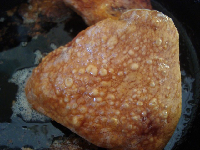 This is not your store bought Pork Rinds, these are the homemade kind that you chew and chew and if you like pork rinds your mouth just waters at the flavor and texture of these babies. Anyway you cut it, these are in limited supply, which just makes them all the more special. So in this case, I got a fresh pork belly with hide on and made bacon, after the bacon was ready but not cured yet, I used it as fresh bacon. It went into the oven at 350, the first thing you will notice is that the rind is going to change color, it will go from a dark pink to a soft tan color, it will lighten somehow in tone from a dark warm to a cooler light..