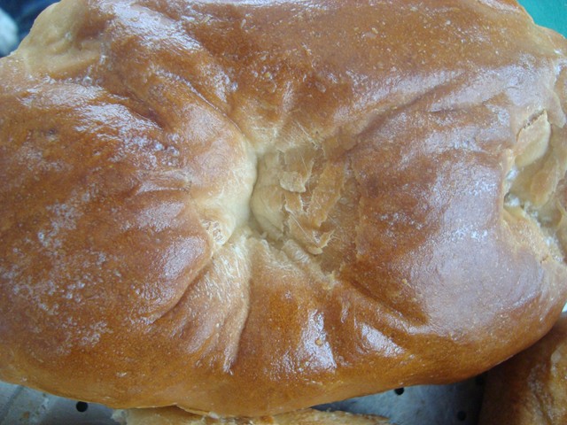 I did very lightly grease the pans with my home rendered lard and they were baked in glass bread pans, I wanted that all over golden color, the bread tops where rubbed with butter for that soft finish on them.