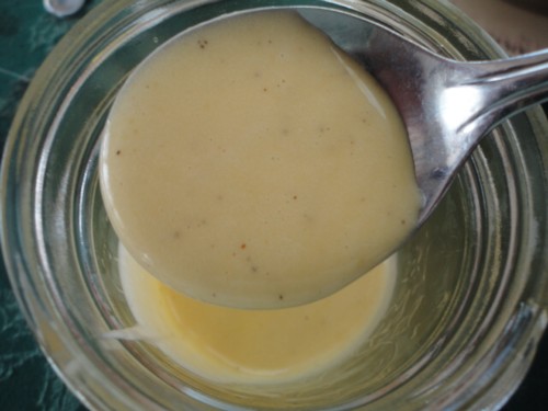 Last but not least, I added salt, pepper and dried keens mustard powder (cuz I know that I will not be serving it to Nat, so I can have my mustard add in it) As I wanted it to be the base for a salad dressing, raither then for sandwhich’s I left it fairly thin, plus it will thicken up a bit once its in the fridge.