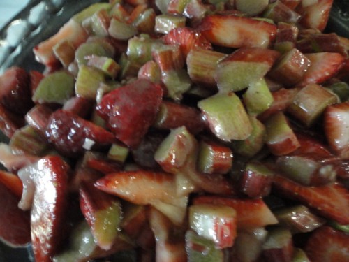 Fresh picked Rhubarb and a some good looking Farm Boy fresh strawberries to go together, washed, sliced and diced.