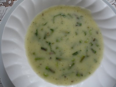 Take all your fresh greens and dollop of butter or magrine or oil olive and give it a little fry, then add your veggie or white bone broth, then your sheeps milk, allow to heat but not boil, then thicken with a little corn starch, cook till thick and serve.