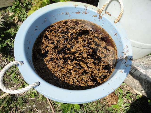 So here is some of my mostly finished compost from last year’s pile, its looks like its coming along just wonderfully.. below, here is some compost tea ready for use in the garden. Below that, is a wonderful growing area of stinging nettle very ready to be cut and dried for future use.