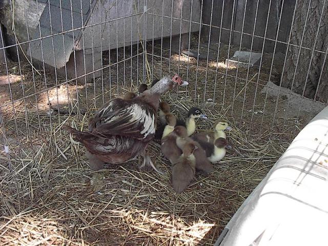 So, lets see, first to give credit were its due, Dh says these photo’s are before he weeded the garden, so I am sending them in the raw so to speak.. so you have a photo of the momma duck and her brood in their pen where they get to spend the first couple days till they are big enough to not get though the chain link fence for the bird pens.