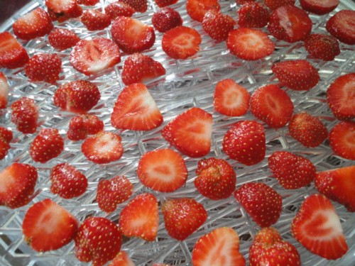 So photos this week of a great example of staggered plantings, so you the back row is very early greenhouse started tomato plants, then second planting of tomato’s and then third plantings. Next we have one of the many! trays to dry of strawberries, along many other things, including the next photo of Elderflowers. Last but not least, my first Greenhouse started Cucumber plants are producing and we have been enjoying yummy fresh cucumber and even made my first spring batch of Grape Leaf Pickles.