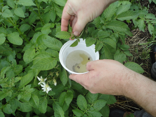 • Hand Picking, we still take out hot soapy water in a container and pick bugs off, and drop them in and put the lid on to kill them, its old school but effective.