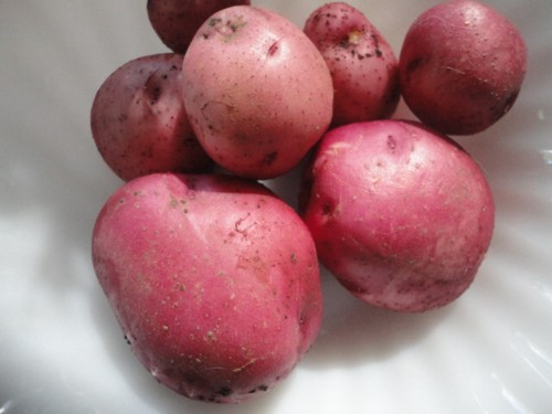The first of our fresh new potato’s from the garden, I went to town the day before Canada day to get a bag of local potato’s and to my amazement, they were out of potato’s, I mean totally out, just a big empty space with a homemade sign that said out of stock. So came home looked in the farm book for the dates on our own potatos, and dug a hill up, and this is what I found.. two big, two med and four little ones, I love how you can eat them skin on, and they cook so fast compared to stored potato’s.
