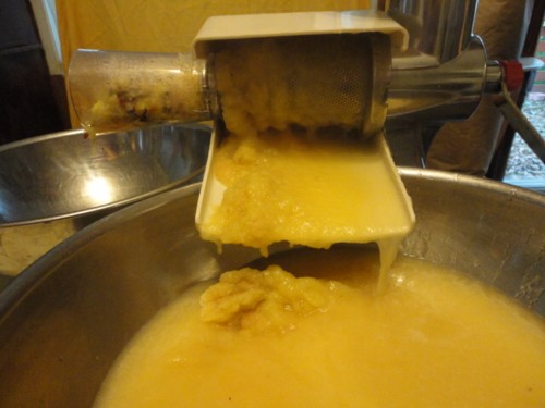 Now, I had made all the apple jelly from my last picking batch so this time, I wanted to make lots of apple sauce, the key to making huge batches of apple sauce is this hand cranked machine.. it cuts the work time in half.. the second key is to have two stoves running at the same time if you can manage it.. sorry for the wierd coloring, its a very overcast day that smell’s like storm coming, and the lights are messing with the color of the photos.