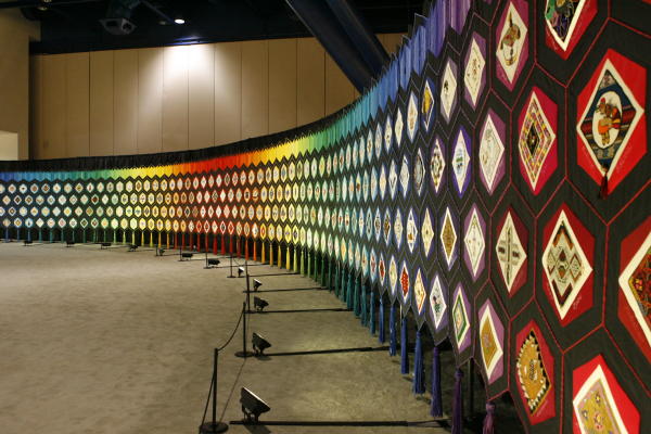 The Quilt of Belonging is “..the largest and most inclusive work of textile art made about Canada” The 120-foot long by 10.5-foot high tapestry portrays the cultural legacies of Canada’s First Peoples and of every nation in the world.