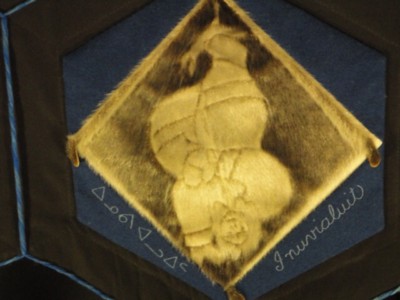 This one is made out of seal skin, the amount of time cutting the fur for the drawings part must have been very time consuming.