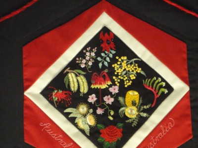 OhMyGod, these are SO beautiful! Can you imagine all of the work involved in these? Loving the rainbow effect and the embroidery in the top square (Australia).