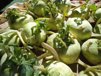 Kohlrabit leaves are also very useable, the small leaves can be used in salad and the bigger are excellent as a braised green, while Kohlorabi bulbs are able to be stored for up to two weeks in the fridge, and are becoming more popular at the farmers markets and at select farm stores like Farmer Boy, they should in fact be used as soon as possable if you want to get their full amazing goodness.