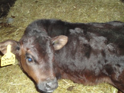 Marty has grown by leaps and bounds, and he is so chunky and solid, he looks like a boy even at this young age, where Girl still seems so ladylike to me, granted I was greeted by her big old head just begging me for a good chin scratch.. I was so pleased to see that Dh had done a wonderful job with the cows while I was gone.. They look great.. always hard to take a good photo in the barn with a flash on, which instead of red eye, gave blue eye.. its really a nice chocolate brown.