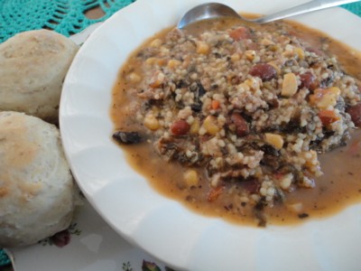 Since I have been home, I have made a number of soups, here are just a few, some I posted with recipes and some have never made it to a post but they were so good.. Every single soup was started with homemade bone stock, the meats were duck, chicken, or lamb, and at least 50% or more of the veggies came from the farm be it pantry, canned or freezers. Have you been enjoying and making different soups in this cold month?