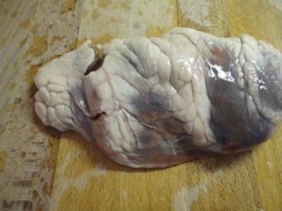 Tradionally if you are buying your hearts, they will be split open, this is because they must be inspected, and that is the case with my lamb hearts. These have been frozen now for a few months so much duller and darker in color then a fresh heart would be.