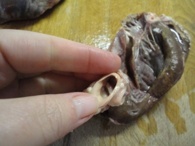 b) Clean your hearts up, remove the silver skin, and the tough outer fat for most dishes