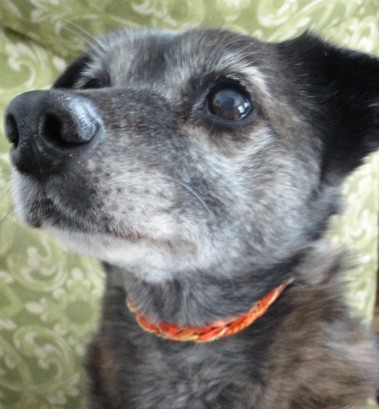 I must say, she looks lovely in the “orange multi” collar. It goes quite nicely with her fur; )
