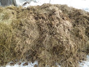 Ok, so the photo does not look like much but when we got that amazing spring snap of weather at the first part of feb, we got busy and cleaned out over 3/4 of Girls huge loose stall’s deep winter pack, leaving her bed area still in the deep pack method so that she still had a nice naturally warm and thick sleeping area.