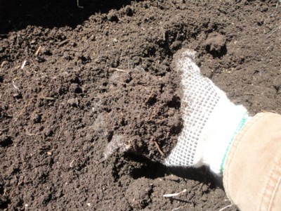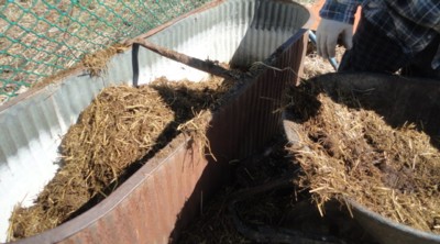 Once you start digging into it and breaking up the shovelful, taking out the starting top plants, and now you have wheel barrel full of rich good dark soil to be used on top of the compost, we want about 3 or 4 inches of good soil on top of it. Now I placed glass on top to act as a greenhouse effect, the big piece will stay, but I have a small overlap piece on the end that can be added or removed with ease to increase or reduce the heat I can easily throw a thick old wool blanket to drape over it, on a very cold night but as the compost will act as a slow acting heat matt, at this time of the years is very unlikely that it will be needed.