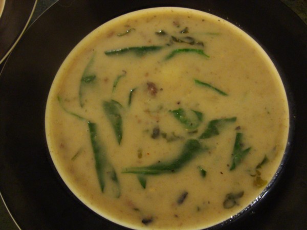 - Once hot and thick, add two cups mixed greens just to wilt and serve with a sprinckle of cracked pepper and salt to taste.
