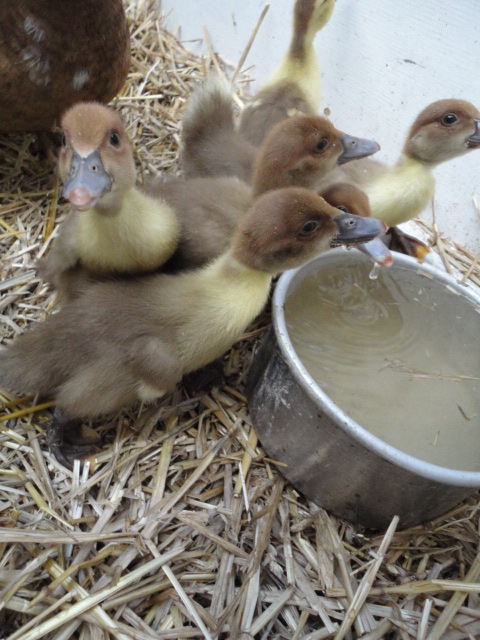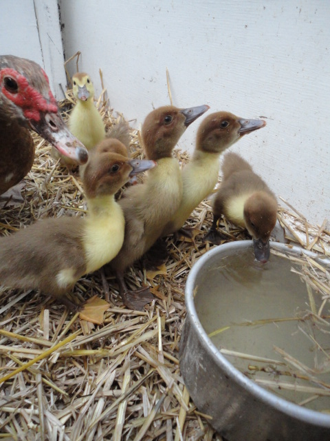 Muscovy ducklings are really cute when they’re little, but as adults they creep me out – ’cause their faces remind me of vultures, I guess – but I’ve heard they’re amazing bug catchers in the barnyard? Never seen them up close before, so what makes their feet different colours?