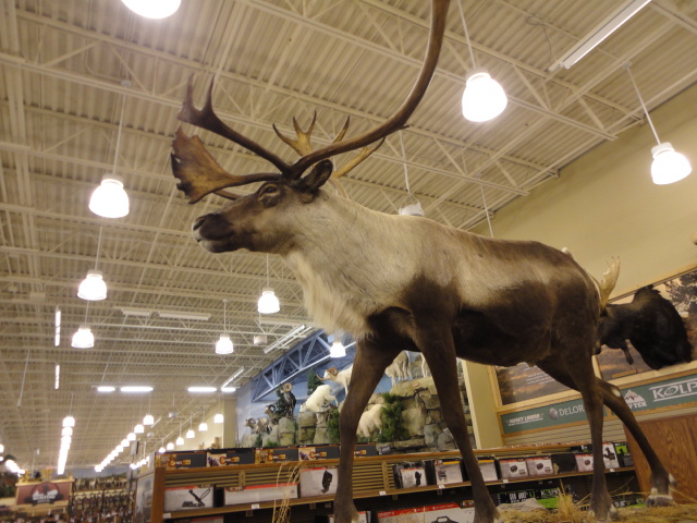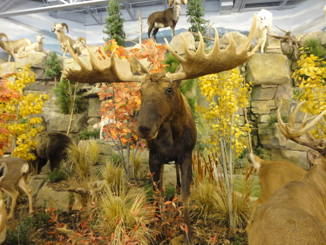 This is still the cabela’s store, they have stuffed critters all over the store, some on the walls but also they have setup for them. It is a amazing store..