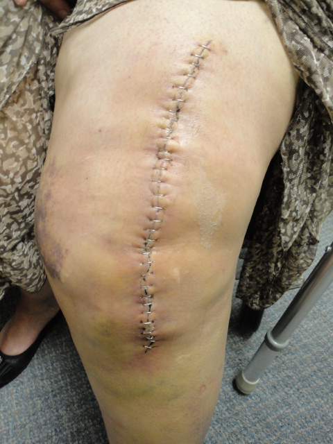 Well, mom got her staples out and the wound itself looks great..