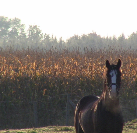 LOVE the sharply outlined detail of corn tassels backlit in the misty golden dawn light (and how Brandy Girl’s starting to look all velvety-soft in her new brand-new winter coat: )