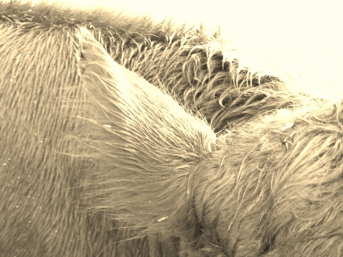 • At least you figured out that it was a guest, DH didn’t know what it was lol.. that would be Girl, part ear, part neck with sunrise coming up and over her wet hide..