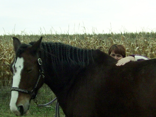 So here is my story of yesterday’s journey with Brandy, she was as willing as I in terms of wanting to get out an spend some time together, they took off the corn from the big farm fields around us and that means we now have many, many acres of rideable land accessable from our back pasture gate, which means that we can go riding without needing to go on the road to get there off-farm.