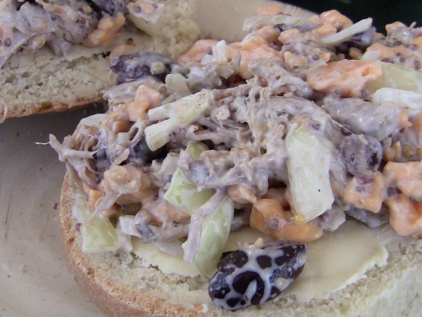 Pulled pork with mustard, mayo, black olives and old aged chedder cheese..