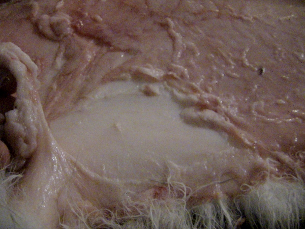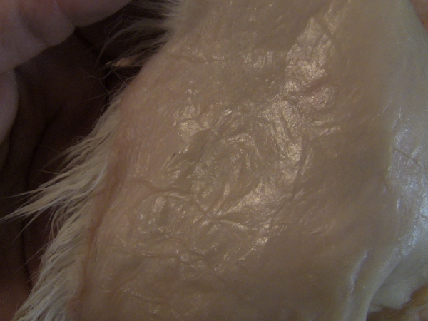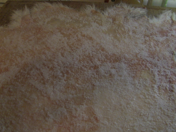 No, when skinning out the rabbit, I like to cool the hides as fast as possable, so as soon as they come off and I have openned up the legs to be able to lay the whole raw pelt flat, I like to lay it skin side down in a clean snow bank to chill.