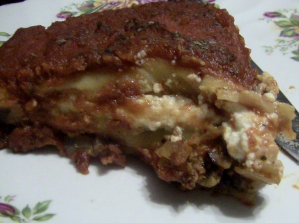 Homemade Pasta -Flour, egg yolk and a touch of cold water, enough to make three layers of lasagna pasta for a 10 inch pie plate.