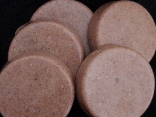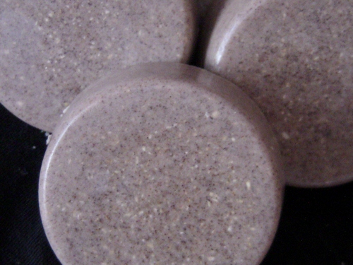 Link? Do you mean recipe? I got my goat milk melt and pour soap from a ontario company, I put a tbsp of cinnomon and 1/8th of a cup of smale flake oatmeal and I ground it up in my little herb grinder till very fine, and added and stirred in at the end, for the Cranberry, I took some of my own homedried cranberries, and a heaping tbsp of sliced almonds from my pantry and ground them to a fine powder, (this one was softer and a bit damper) and again at the end mixed in.. Each batch made six small round bar’s of soap, the third batch was left cream with lemon and lemon grass oil added in at six drops each and then I used chocolate molds to make little tiny molded soaps from it.