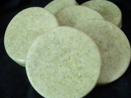 One more and I will stop for today but this one while not as fancy in looks at the ones I just posted, turned out wonderful, I took some of my regular sage, some of my pinnapple sage and two dried lemon rinds and ground them up for this soap and I just love! the look and the scent on it..