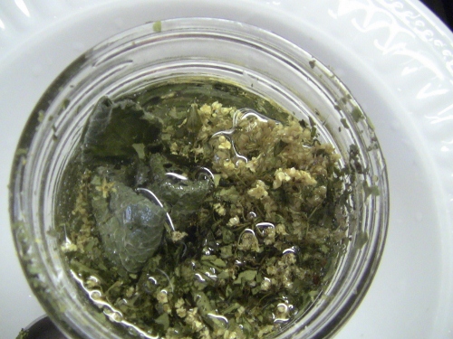 So simple, so easy, one of those things that takes no time at all to make but takes time to be ready to be used.. did a total of three 8 oz jars with different mix’s, this is, the one of the udder balm, it has elderflower, pepperment, plantain and nettles in it.. they were all done with sweet almond oil, some will be used in salves and others in soap making, as most recipes I have tend to call for 4oz of almond oil, three full jars are enough to make use in six batches, I had to make the call on cold infused vs hot infused and for these are going cold.. I will do a heat one for one of the salves, but will do its own post for that..