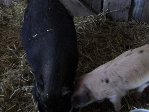 3 Responses to Growing up, and good chow! The piglets are gilts now!