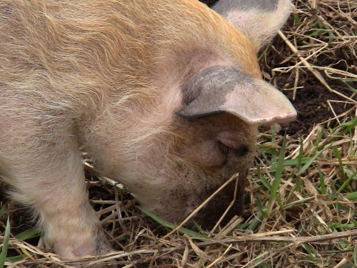 I got some awesome photos of little kermie just loving his new job of being a garden pig..