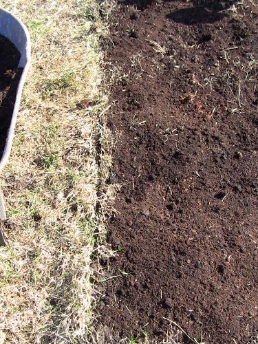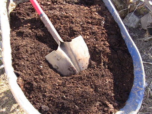 compost from our four year old barn pile (this has sheep, pig and chicken/duck/rabbit in the mix)