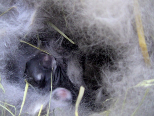 So as we are speaking of babies, here is a new snap shot of one of the wee buns, gotta tell a funny story, you see these kits were born on the same day as niece #2 and so she asked if I was going to keep a baby, and I said, I can’t hon, I just got three new female (all unrelated) and I don’t like to keep more then that.. but that she could pick the names for the buns, so we will see what she comes up with when they get bigger.