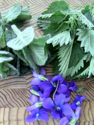 Here is my current spring version (while my apple mints are coming up, compared to the nettles, they are just starting) so you use what you have.