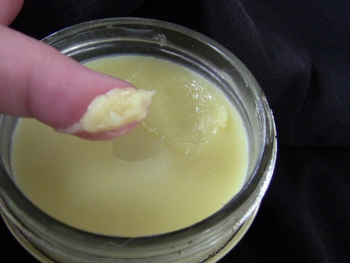 Add in 4 tbsp. of coconut oil and 1 oz of raw beeswax, allow to melt into the mix.. strain and jar the mix into small canning jars, put your lid on and allow to cool.