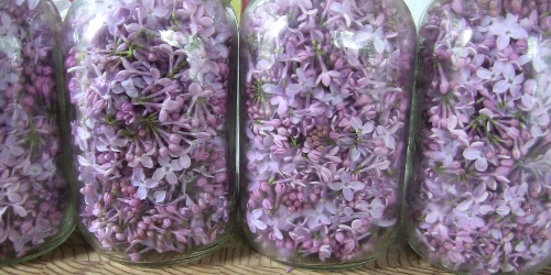 Its that time of year to make lilac jelly or syrup.. collect your flower bunches, don’t cut the branches to do this, just break off the flower clusters only, you will need to pick the flowers themselves off the stems, and lose the green bits as well.. you can see on the above photos of both open and just about ready to open flowers work just great.