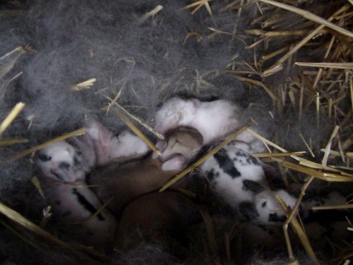 They are mutts, a mix of the four or five most commonly seen meat rabbits in my area, the dad is a fifth gen of my own keep backs, and the doe for this litter is new, and she was sold a “meat breed type doe 6 months in age” I got her for 5 dollars at the spring local bird sale..I have asked the older gentleman for more info before but he speaks almost no English, which is still more French then I know. lol