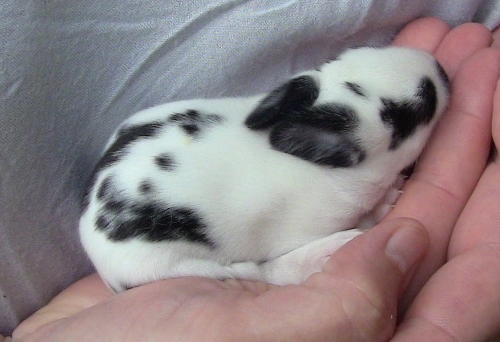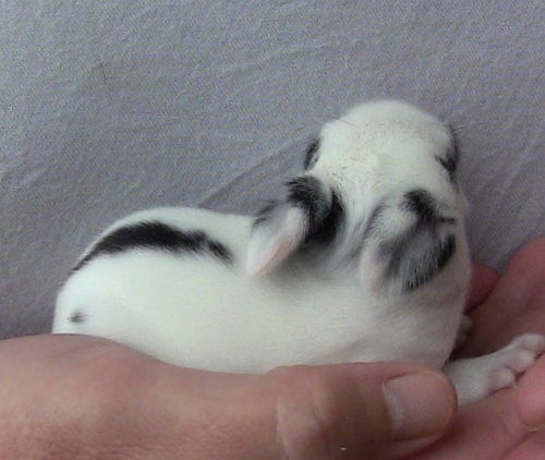 • the funny thing is that she is solid black herself with just the tips of her front paws and her nose have a tiny bit of white, she was breed to blue my blue broken back buck. She is the smallest doe I have ever owned, she is what is considered a medium size rabbit, I will be interested to see how it effects grow out rates..