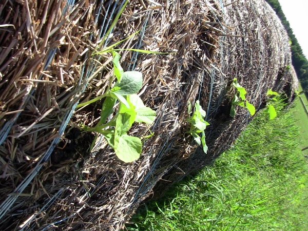 The ground straw bale area is a 700 feet strip in my food forest, we rounded out a bale, back and forth, created hills and planted in them, the squash bed area is really just a flip idea, instead of clearing the land, making the hills and then mulching, I just flipped it for a lot less work, I layed down the mulch, made the hills and let it go, instant garden..